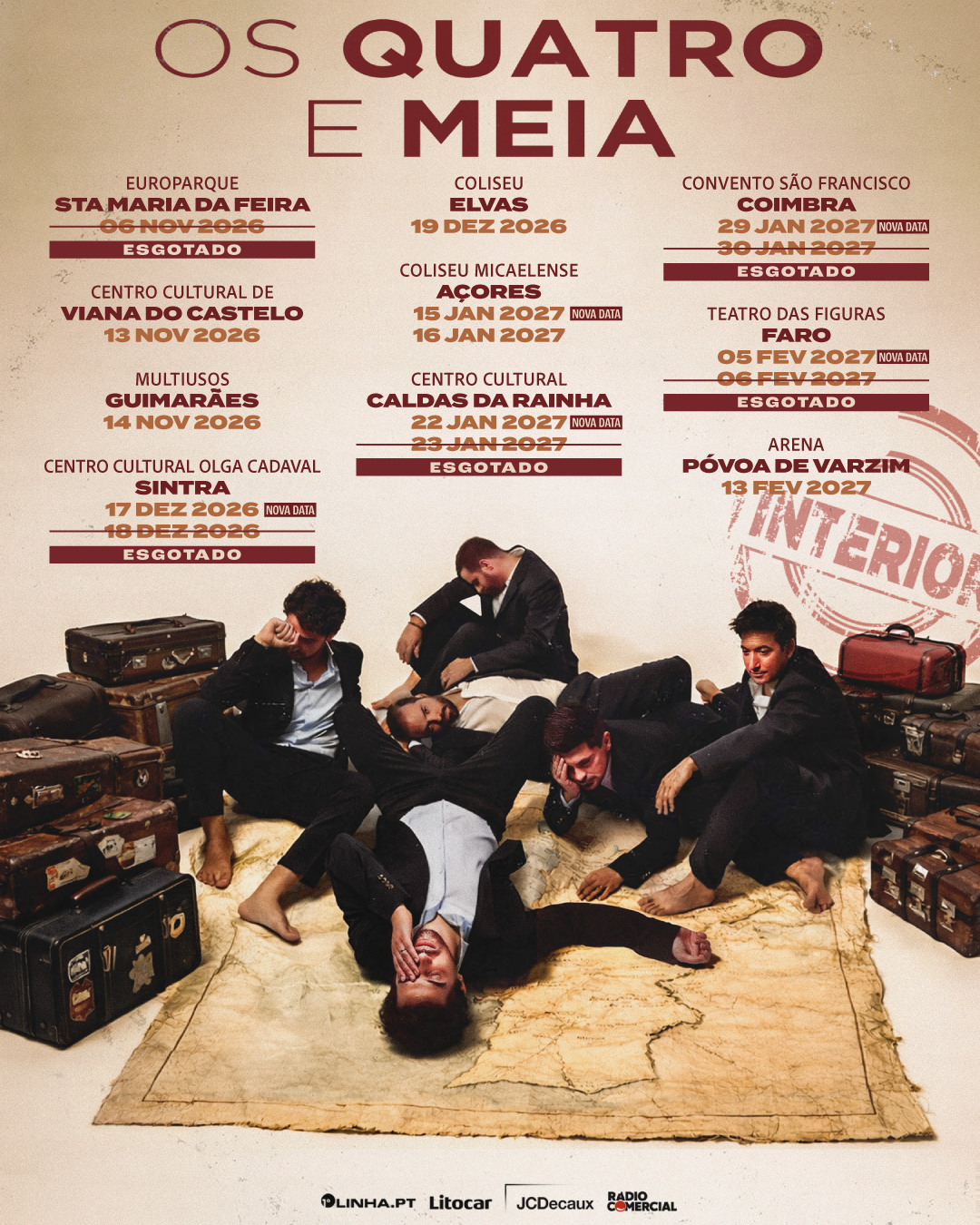 Depois de esgotarem rapidamente cinco dos concertos da digressão acústica “Interior”, Os Quatro e Meia anunciam novas datas em Faro, Coimbra, Caldas da Rainha, Sintra e Ponta Delgada. Os bilhetes para estas sessões ficam disponíveis a partir de 1 de abril.